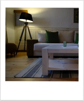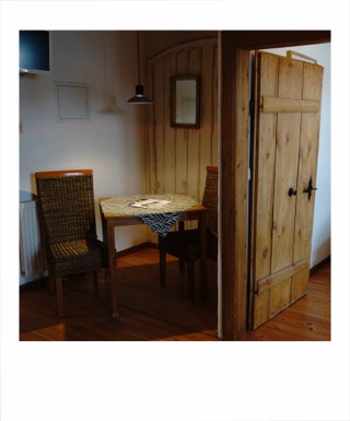 und ist 26 qm groß. Sie bestehtaus einem Wohnzimmer mit Essecke und Küchenzeile, einem Schlafzimmer und einem Bad mit Dusche und WC.Der Dielenboden, freigelegtes Fachwerk und Holzpanele im Wohnzimmer geben den Räumen ihren ganz eigenen Charme. Die kleine Küche ist mit einem Zweiplattenherd, Kühlschrank und einer Basisausrüstung zum Kochen kleiner Gerichte ausgestattet. Das Sofa im Wohnzimmer kann gegebenenfalls zu einem Schlafsofa umfunktioniert werden.