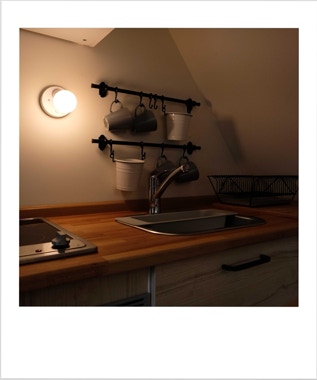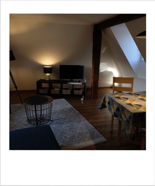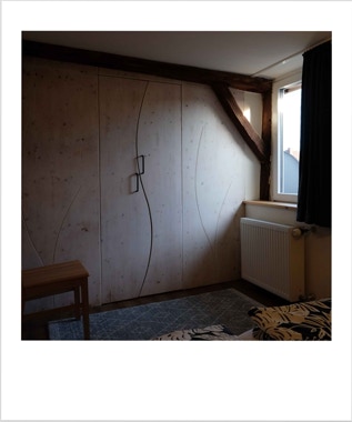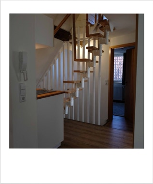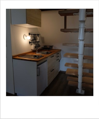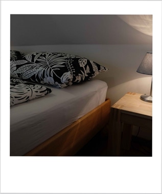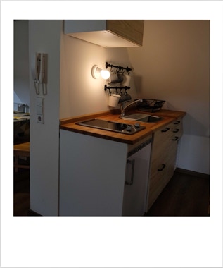 Unsere Wohnung Nummer 4 liegt im zweiten und dritten Stock und hat eine Grundfläche von ca. 60qm. Einst war hier der Dachboden des Dreher-Anwesens. Wohn- und Schlafzimmer sind durch ein Bad mit Dusche und WC sowie einer Küchenzeile getrennt. Die Küchenzeile beinhaltet alles, was Sie zum Zubereiten kleiner Mahlzeiten benötigen.Im Wohnzimmer befindet sich eine Eßecke ebenso wie ein großes Sofa, das zum Ausruhen und Entspannen einlädt.