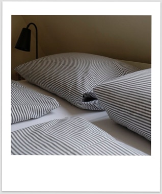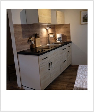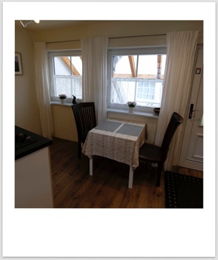 Die Nr. 7 ist mit ca 60qm die größte unserer Wohnungen. Sie liegt im ersten Stock und hat einen geräumigen Wohn-Eß-Bereich. Von dort geht es über eine Treppe in zwei kleine Schlafzimmer. Eines mit Doppelbett, das andere mit zwei Einzelbetten. Das Bad mit Dusche und WC befindet sich auf der Ebene des Wohnzimmers. Die Küche der Nr. 7 hat einen Zweiplattenherd und einen Backofen